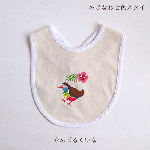 お土産や出産お祝いに。おきなわのモチーフの紅型風プリントのスタイ